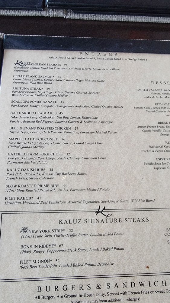 Introducing the menu at Kaluz - Fort Lauderdale, a top-rated diner offering New American cuisine and refreshing cocktails in a trendy setting. This restaurant provides various amenities such as reservation options, delivery, and takeout services, along with a diverse menu that includes vegan and vegetarian selections. The ambiance at Kaluz is praised by customers for its beautiful canal view and delightful atmosphere. The extensive menu features seafood, steak, crab cakes, and unique dishes like shrimp and goat cheese flatbread. Guests rave about the delicious meals, from jumbo lump crab dip to roasted chicken and baked potato. The attentive staff, waterfront location, and overall dining experience make Kaluz a favorite among locals and visitors alike. Visit Kaluz - Fort Lauderdale for an unforgettable dining experience by the water.